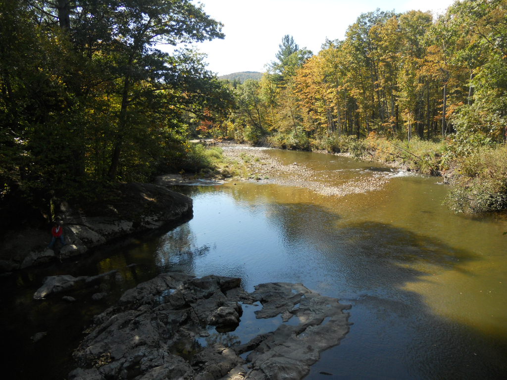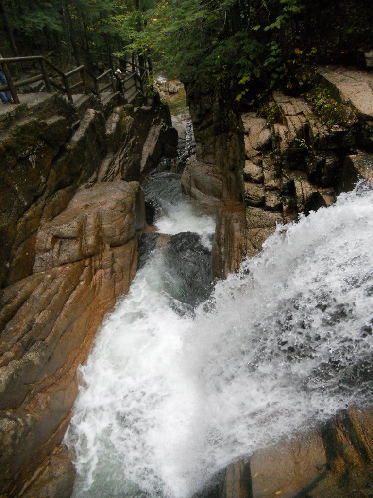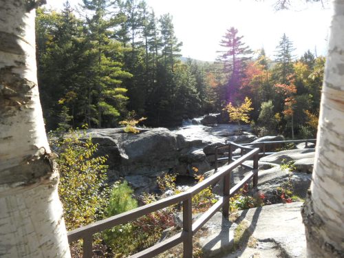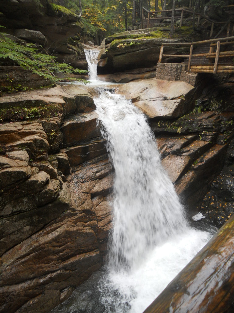 The first significant stop on the highway was the Passaconaway Historic Site. This home site was built in the early 1800’s remained privately owned until 1962. It had no inside bathroom until the last owners added it around 1960 and used it as a summer home. The original family had five daughters and the last of them lived in the home until 1938. Not too long after the house, we found a water fall and, of course, had to go see the view. Lucky for my knees this path was not the raw forest roots we dealt with at Bethel, but can you tell from the picture I was not that excited to walk up hill again?