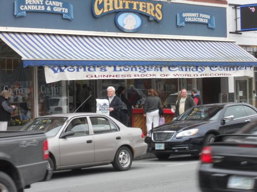By this point I was ready to eat anything, but again we lucked out and found a fabulous place where we feasted on the best butternut squash soup and Rachel sandwiches on pretzel rolls. Stuffed and ready for a nap, we decided to drive north to Littleton to see their art show and street fest. Evidently the majority of it had taken place while we were driving through the White Mountains. We did, however, manage to save the trip when we found a candy store with 100 feet of candy jars three deep. I have never seen this many different kinds of candy in one location. Naturally, we did our best to help support the owner!