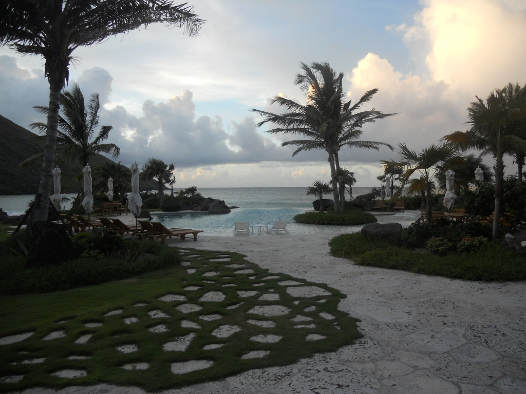 They have a special menu and price on Wednesday nights so most people wait for that to go to the Pavillion Restaurant. We decided since we did that last week, we wanted to go this week and sample their full menu. As a result, we were the only people there and had the restaurant to ourselves. Talk about good service! For my foodie friends, I had a coconut crusted pork tenderloin with apple chutney, sweet potato pancake, and cucumber-tomato salad. All of which was outstanding. Carol and Jim had mahi-mahi with pumpkin croquet and christophene vegetables. They also thought the food was perfect. The chef’s complimentary appetizer was lobster sausage brochetta and complimentary dessert was a chocolate cookie.