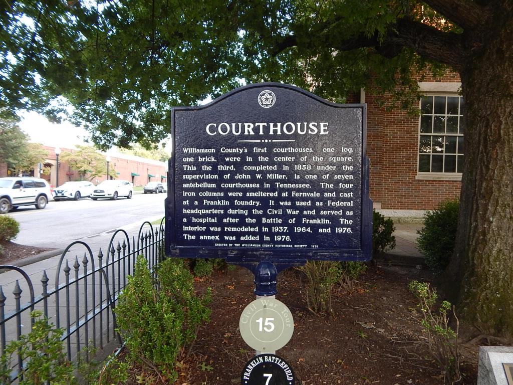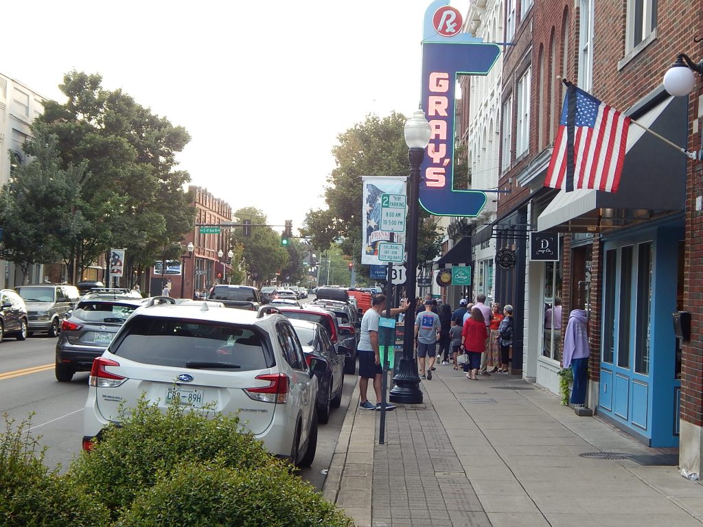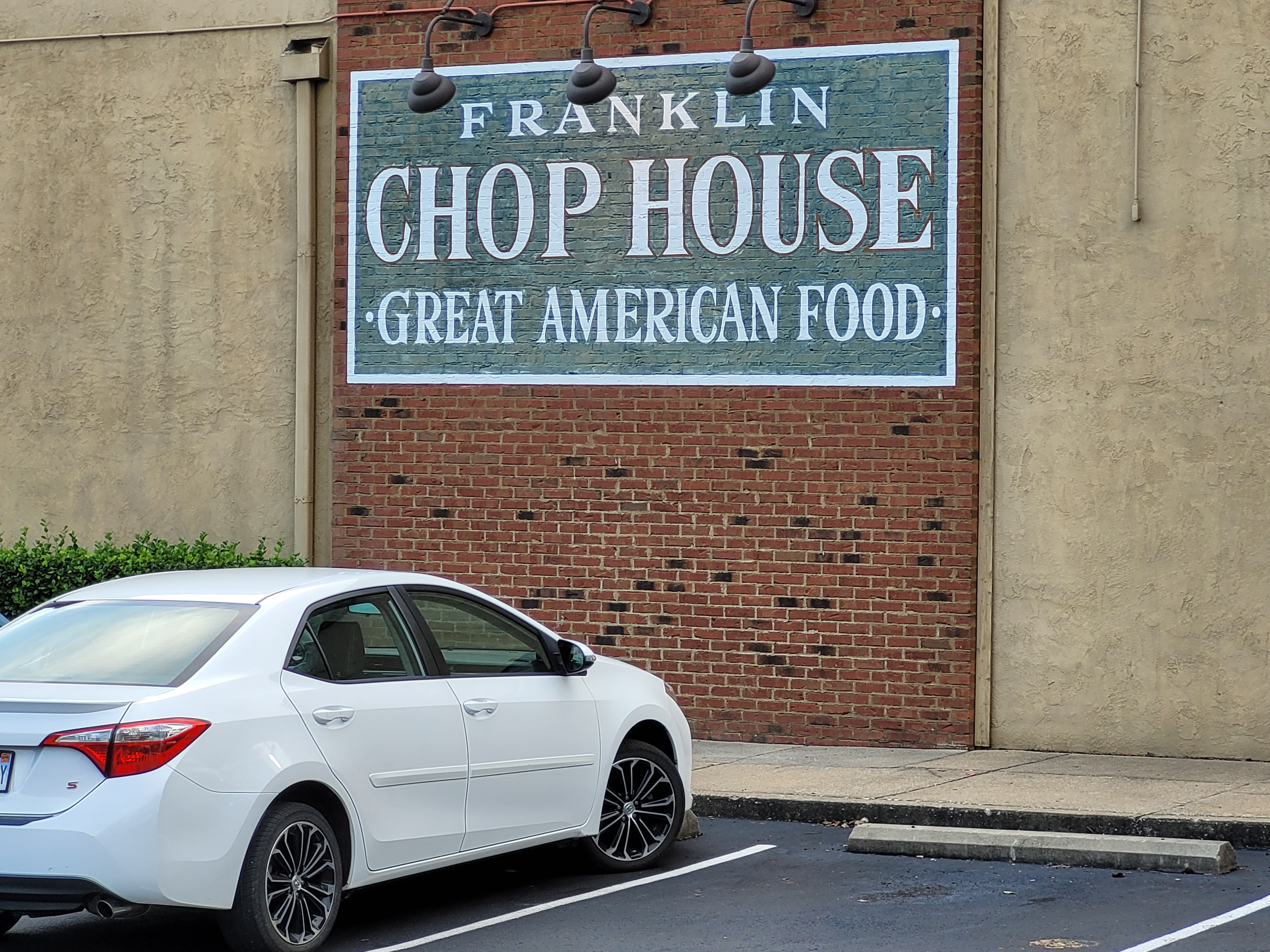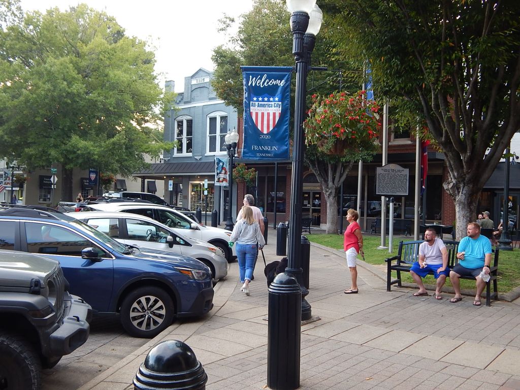 Because we crossed into Central Time Zone, it was only 4:30 when we arrived at our hotel. It turned out to be relatively new Marriott Residence Inn with all the amenities. Since we ate breakfast and lunch in the Eastern Time Zone, we were hungry and found our way to the Franklin Chophouse eating quasi healthy food and then a quick tour of downtown Franklin. What a cute town! No New York or Los Angeles but not too small either with lots of shops and restaurants with outdoor tables. This has just become a place on my future bucket list for Christmas some year. I didn’t notice until we started walking, but the humidity is much lower here as is the temperature. Tomorrow should be a good hair day!