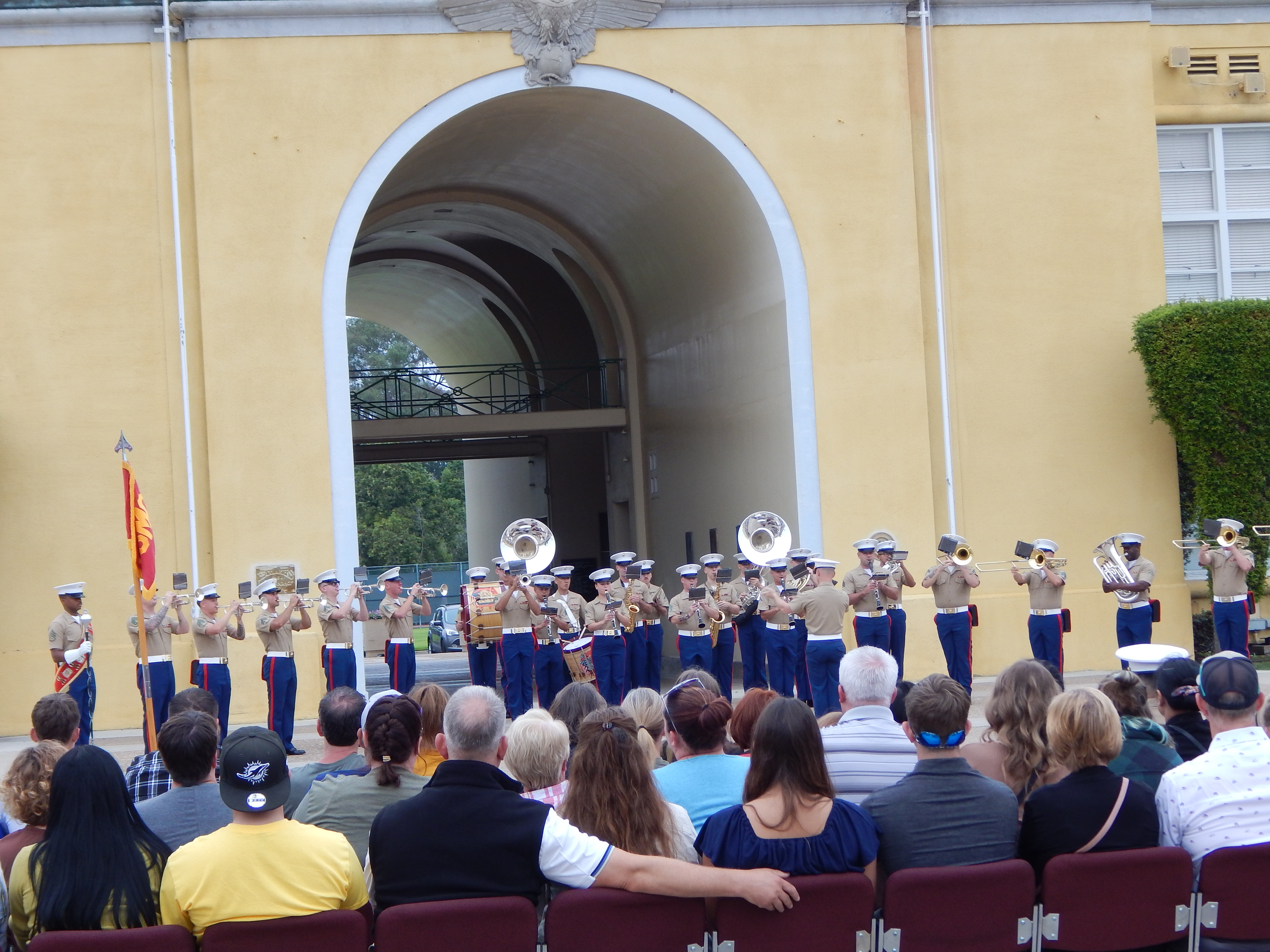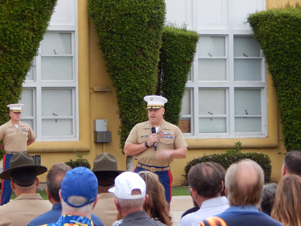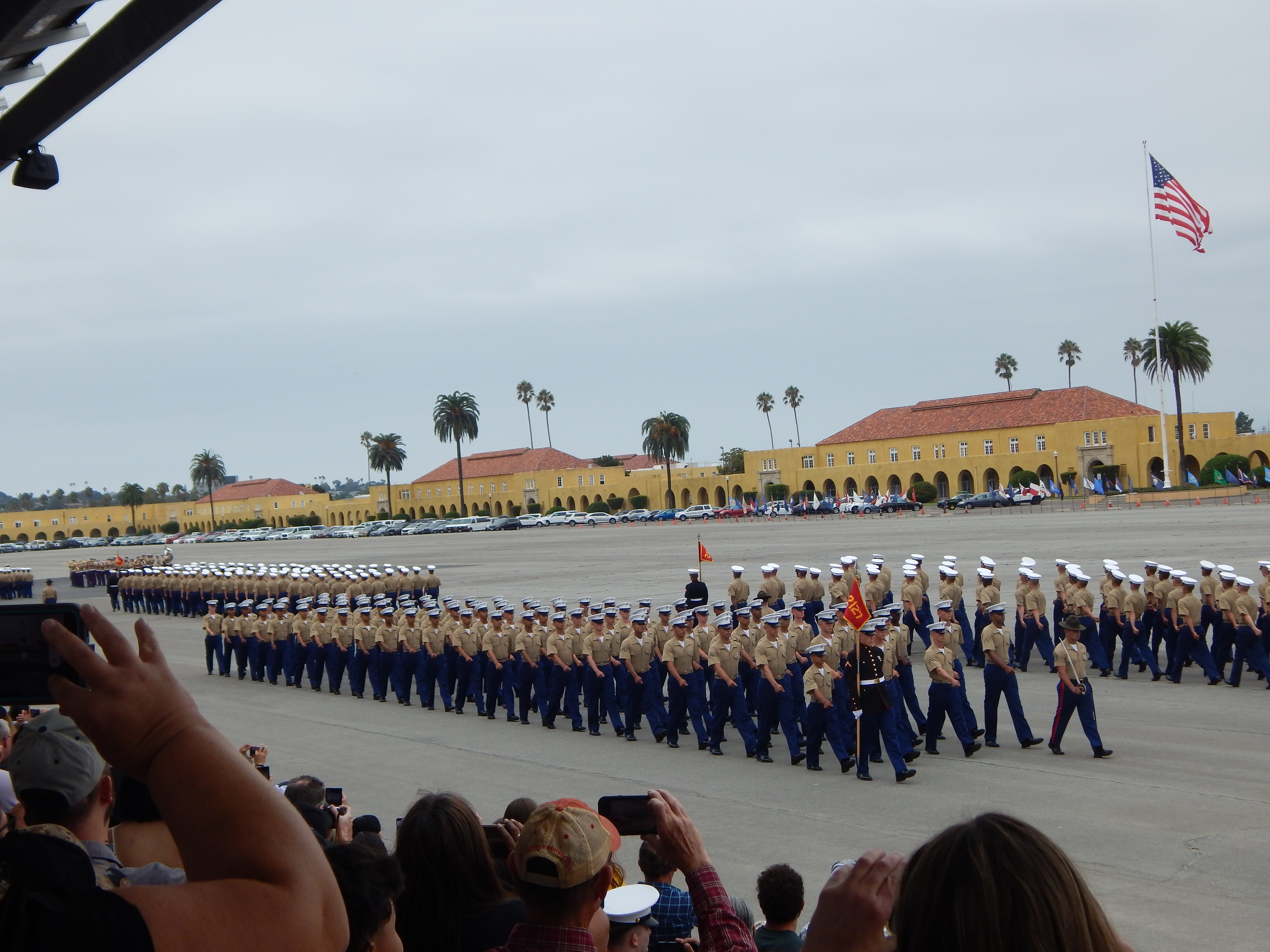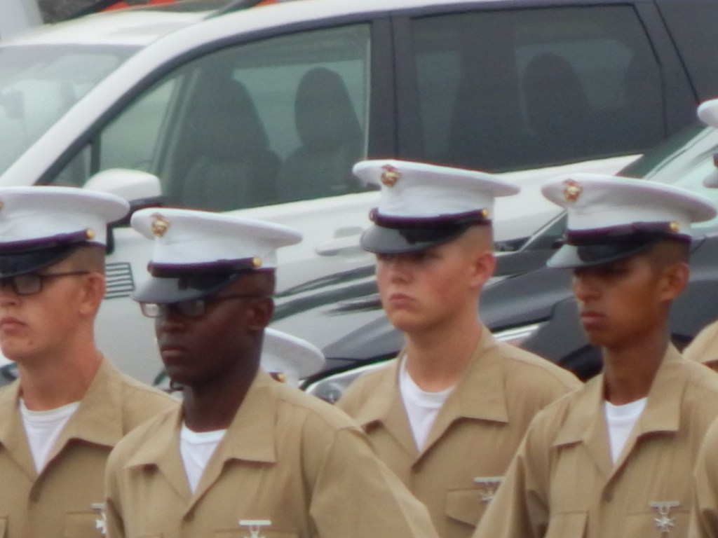 Finally, after waiting what seemed like a forever, we saw the new Marines lined up at the end of the Parade Deck and Marine Band began playing. In they marched in perfect order culminating their 15-week test of grit, ability, attitude and perseverance. When they started there was 603 of them. Today 535 graduated and earned the right to call themselves Marines. Oorah!
